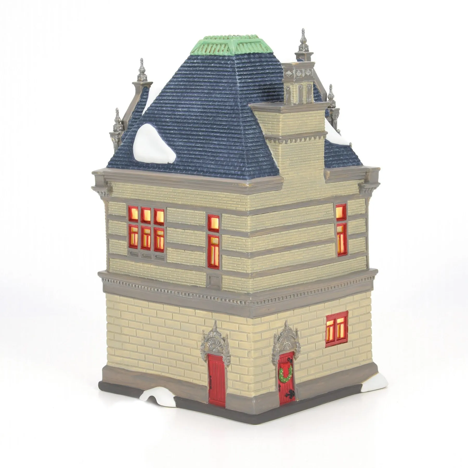 - Hand crafted and hand painted porcelain lit building.